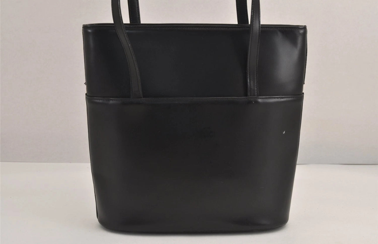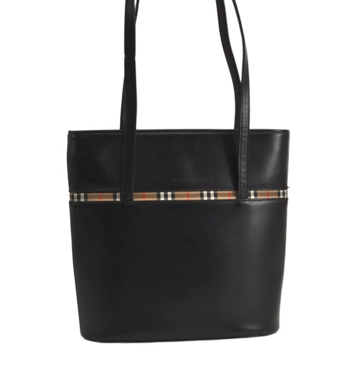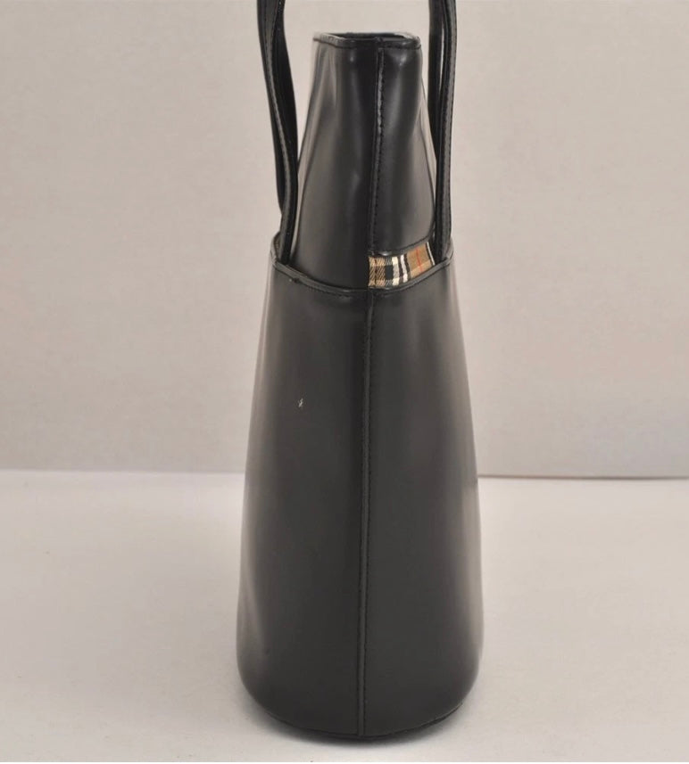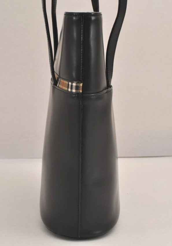 Bolso tote Burberry de piel negra con estampado de cuadros. Número de serie 4475M