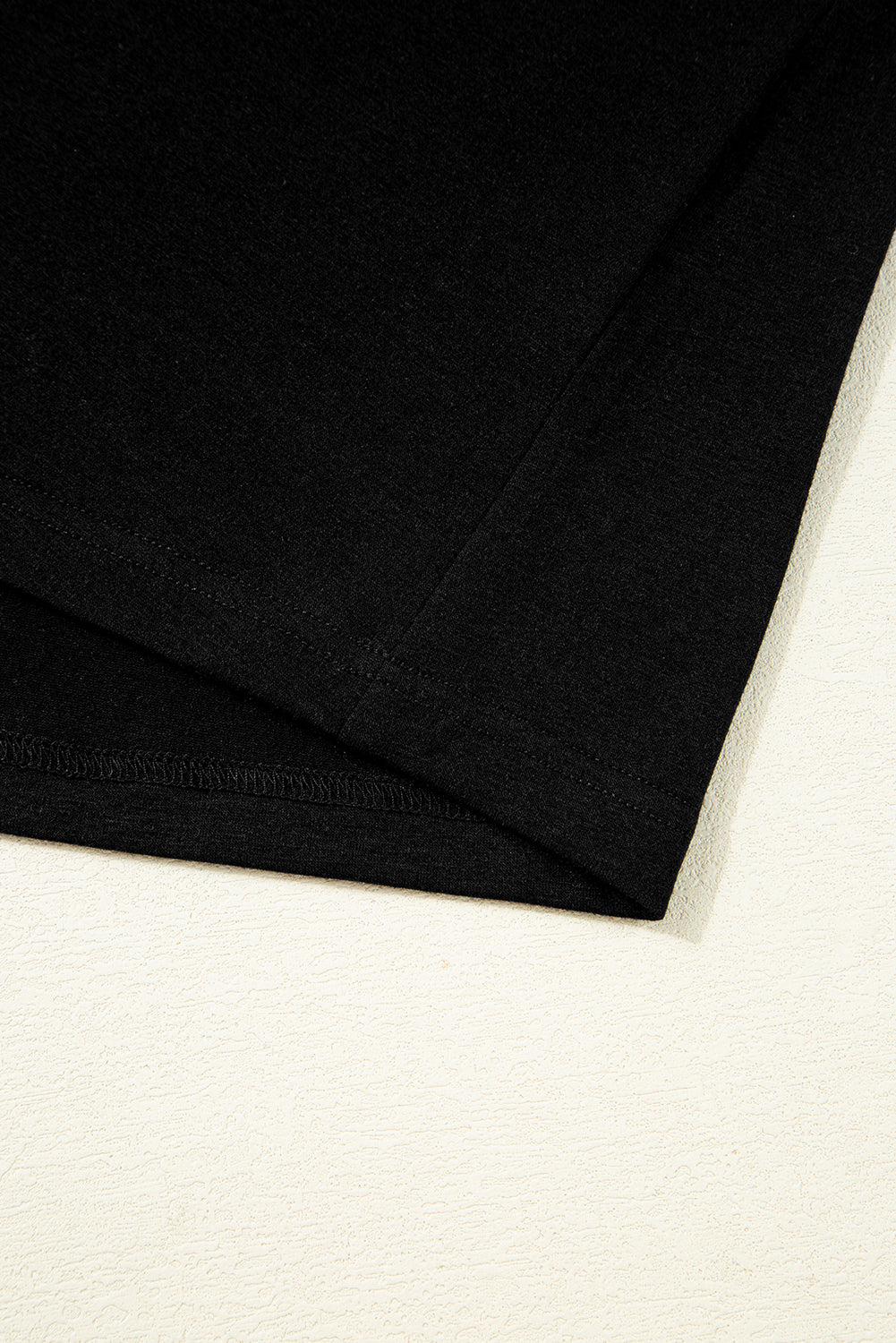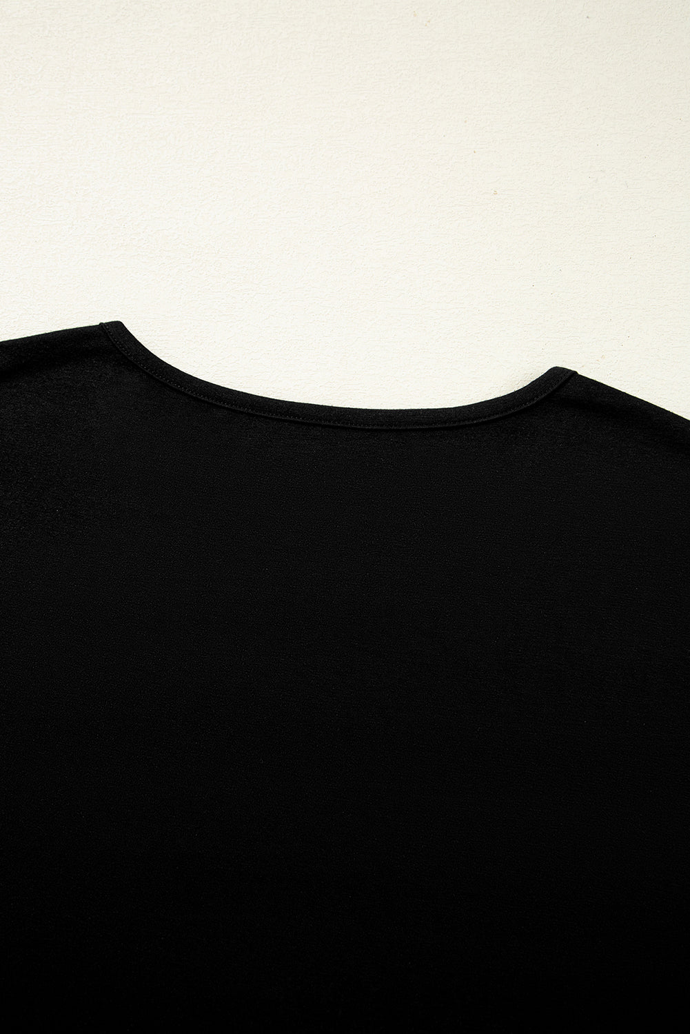 Black Floral Mesh Patchwork Loose V Neck Plus Size T Shirt #260
