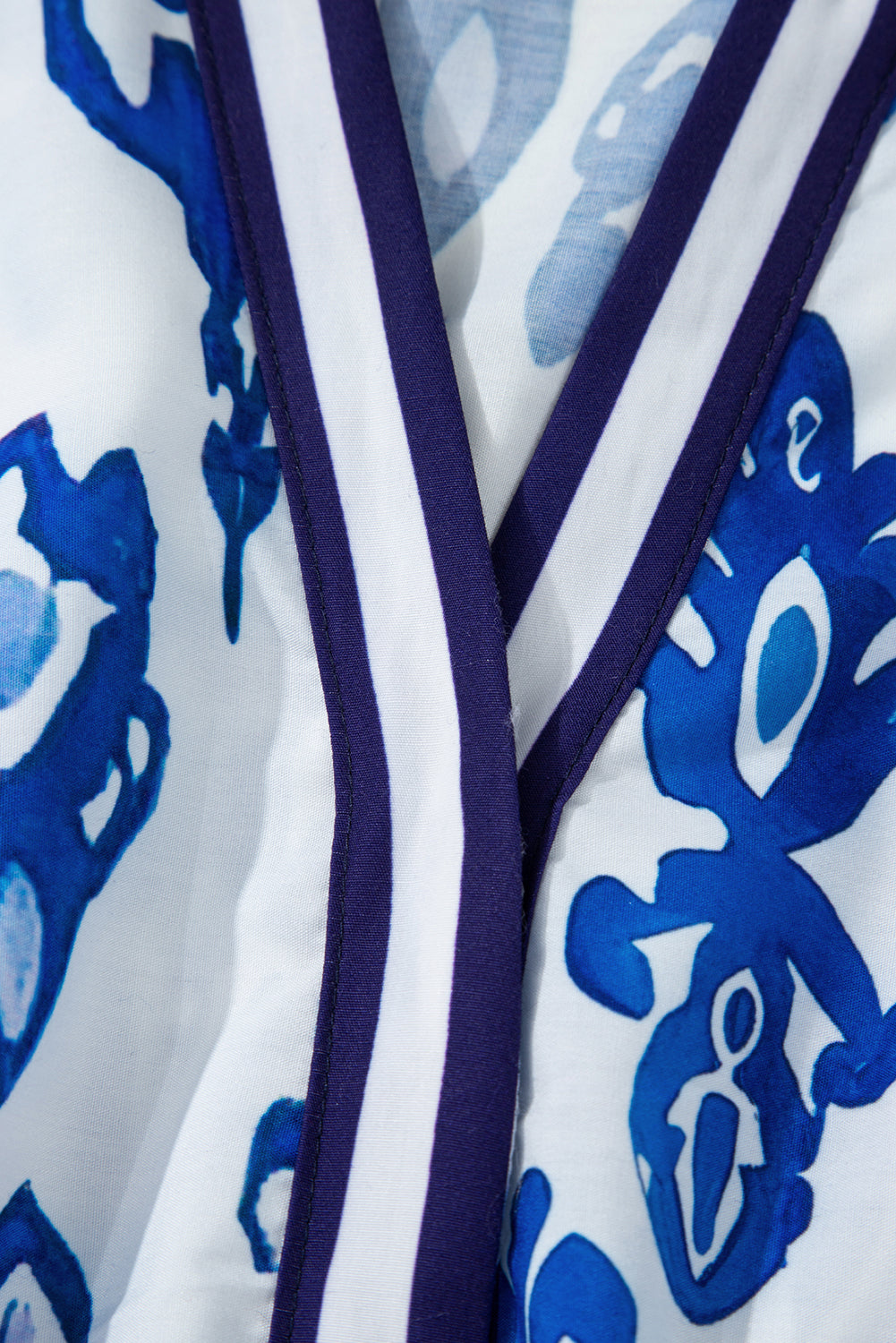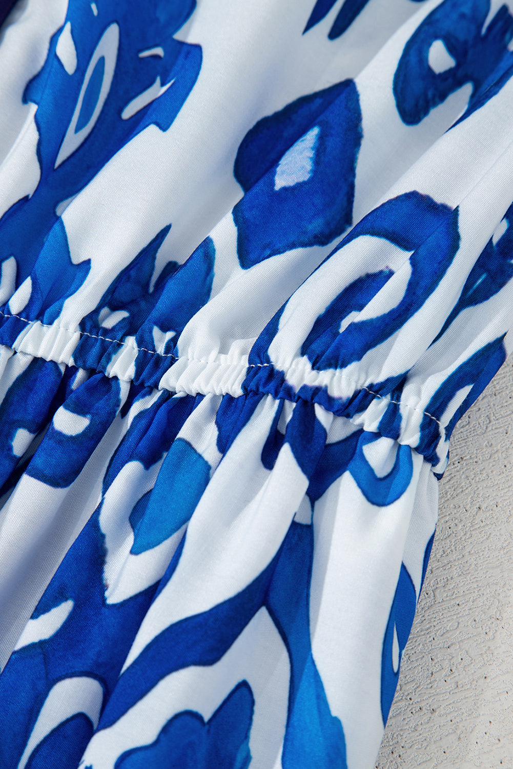 Blue Floral Puff Short Sleeve V Neck High Waist Maxi Dress #15