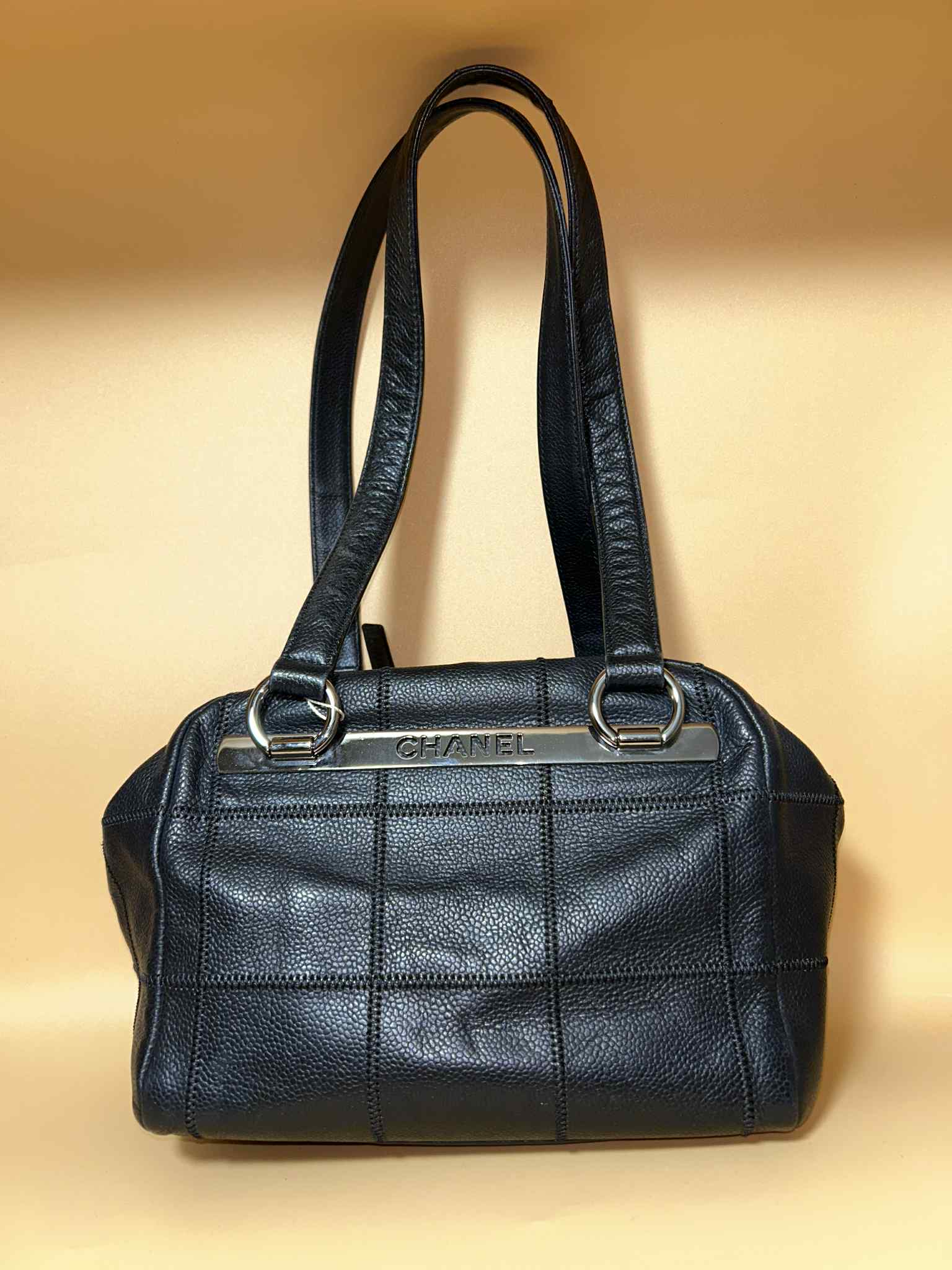 Chanel Black Quilted Black Caviar Boston Bowler Bag - All PRELOVED bags/wallets are used, please keep in mind that you may not be able to appreciate the details that each piece has in the pictures, if you have questions or want more precise details of any of our PRELOVED items contact us directly and we will gladly help you.