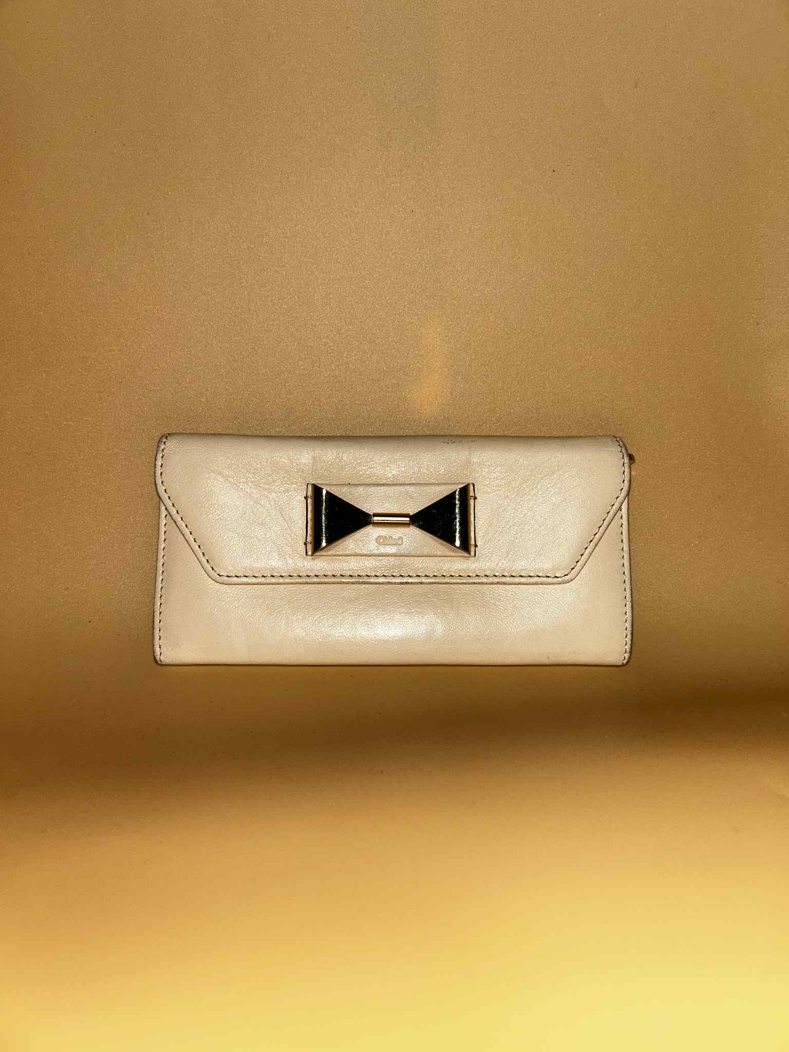 Chloe Beige Wallet with Golden Bow - All PRELOVED bags/wallets are used, please keep in mind that you may not be able to appreciate the details that each piece has in the pictures, if you have questions or want more precise details of any of our PRELOVED items contact us directly and we will gladly help you.