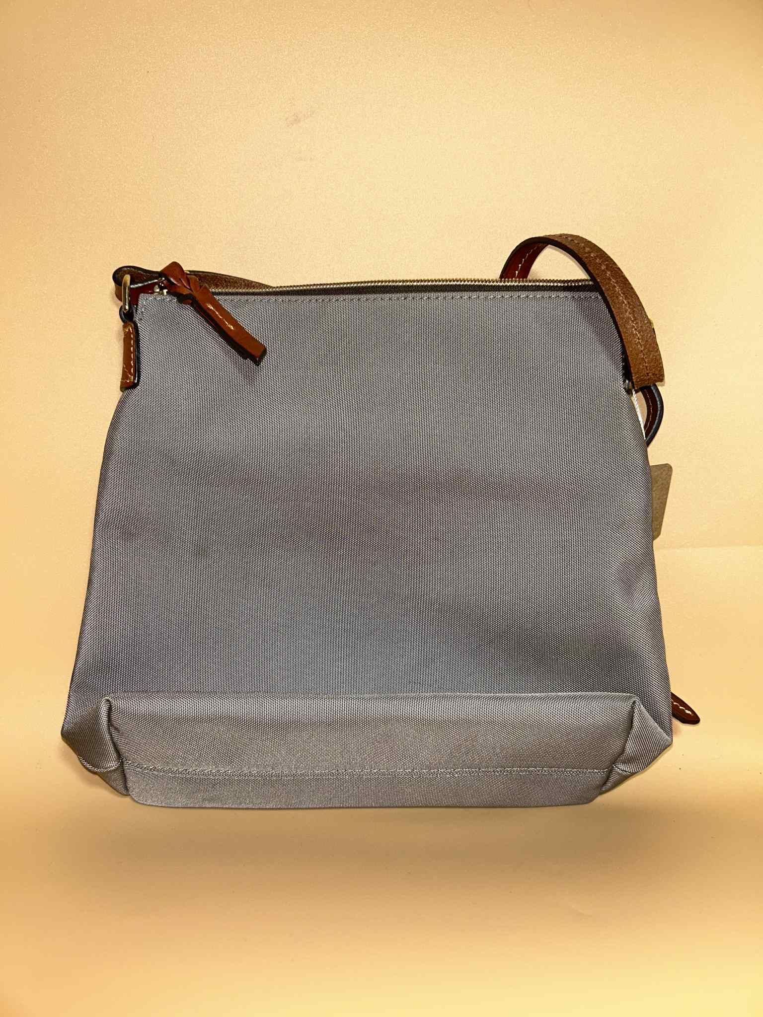Dooney & Bourke Grey Crossbody with Brown Leather Trim - All PRELOVED bags/wallets are used, please keep in mind that you may not be able to appreciate the details that each piece has in the pictures, if you have questions or want more precise details of any of our PRELOVED items contact us directly and we will gladly help you.