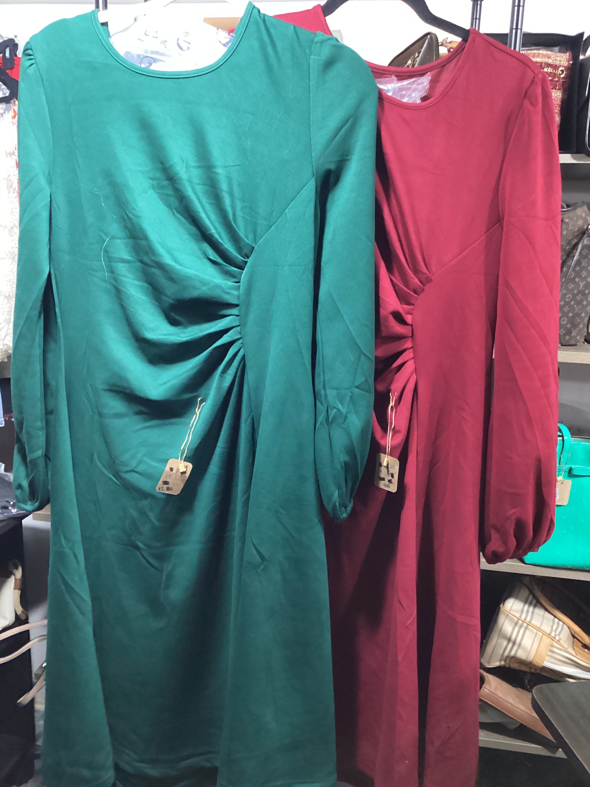 Elegante vestido de manga larga confeccionado en una mezcla de viscosa, poliéster y elastano que garantiza comodidad y durabilidad. El corte debajo de la rodilla ofrece una silueta sofisticada y versátil, ideal para ocasiones formales o uso diario. La combinación de fibras proporciona un drapeado fluido con suficiente elasticidad para permitir libertad de movimiento. Una pieza esencial que combina estilo clásico con practicidad moderna.