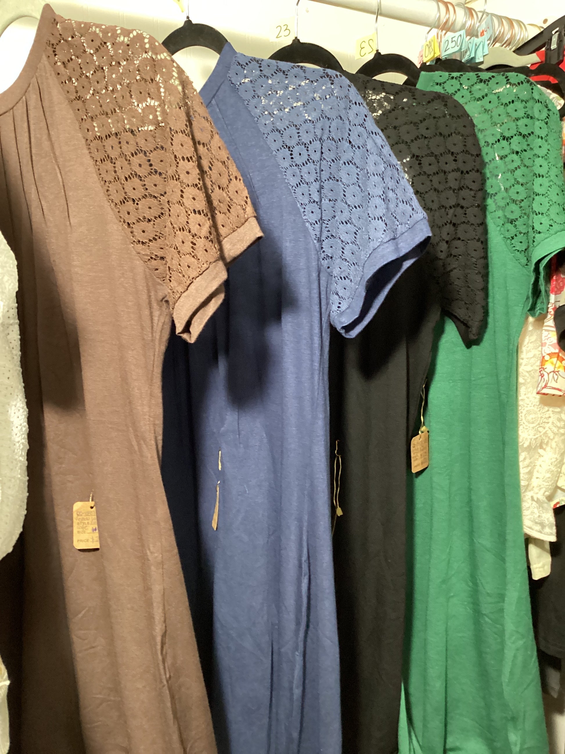 This refined dress combines elegance with everyday wearability through its thoughtfully selected fabric blend. The lace sleeves provide sophisticated detailing while the 65% polyester, 30% viscose, and 5% elastane composition ensures durability, breathability, and gentle stretch. Short sleeves and a classic round neckline create a polished, versatile look suitable for various occasions. The viscose content delivers a luxurious drape, while elastane offers comfortable movement throughout your day.