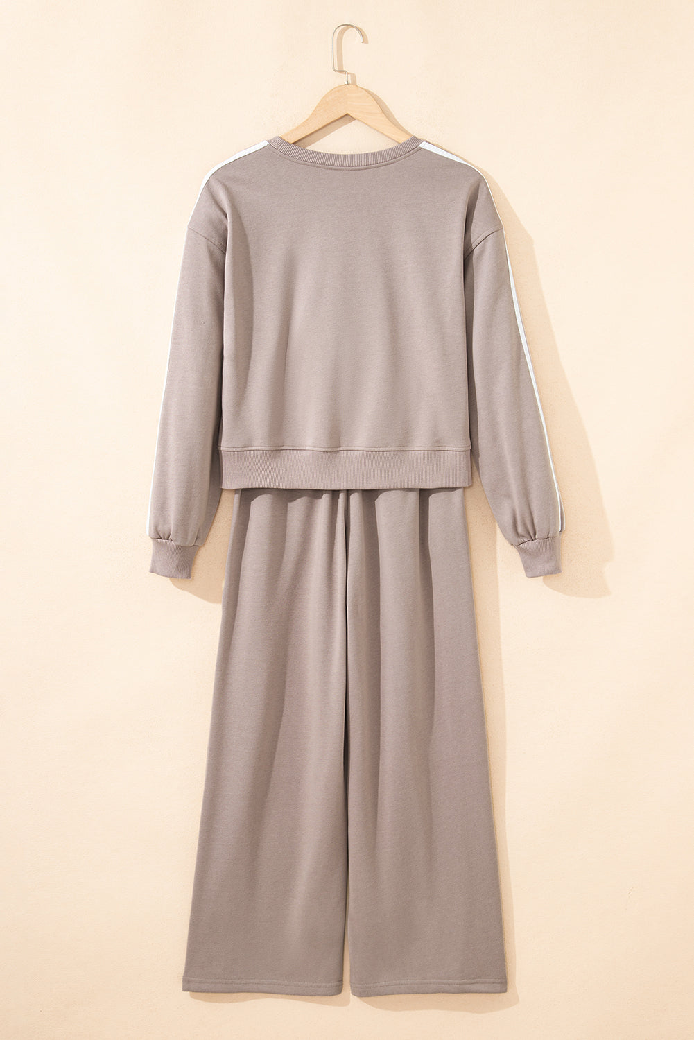 Gray Morn Varsity Striped Detail Crewneck Pullover Elastic Sweatpants 2pcs Outfit #131