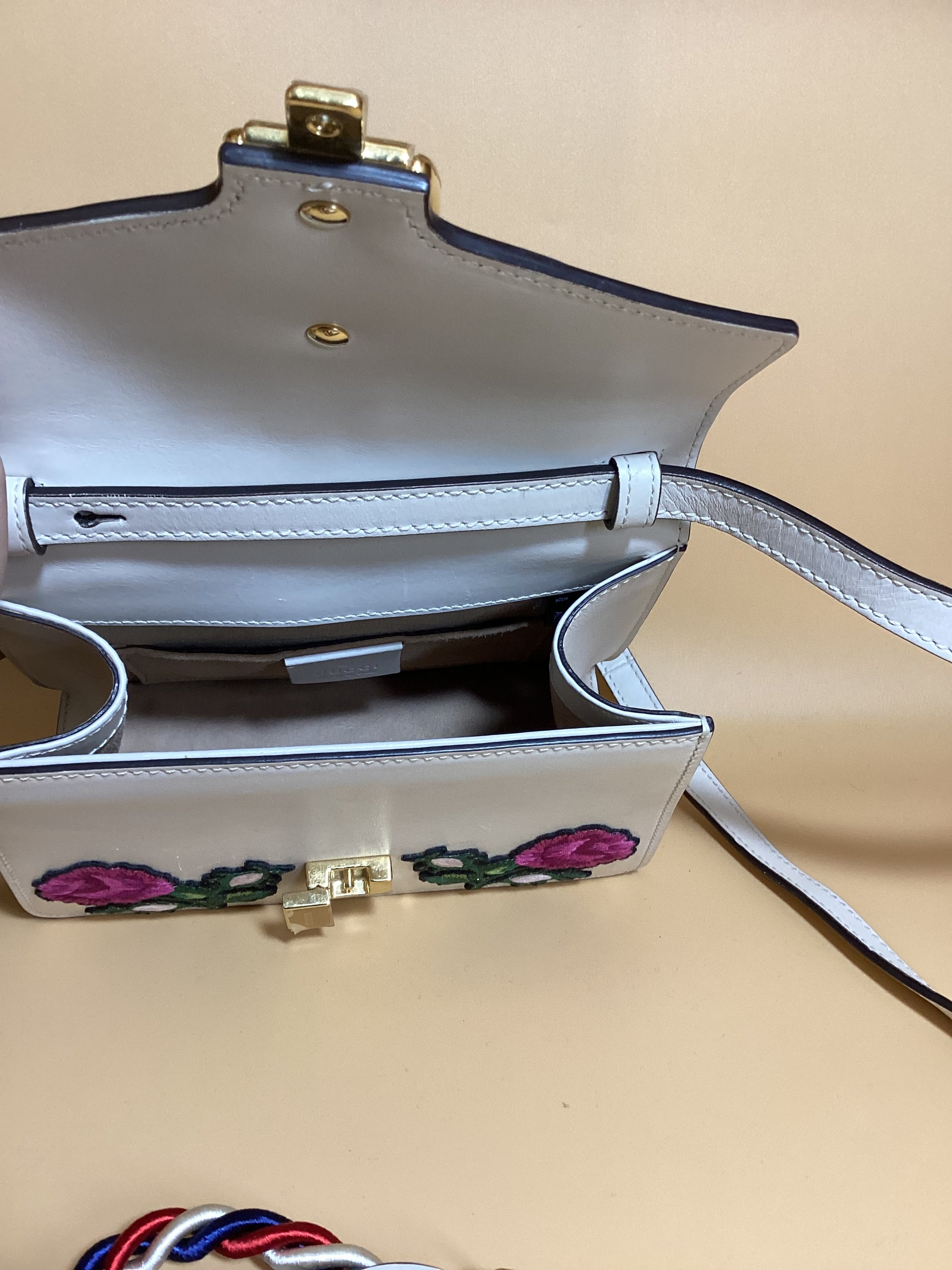 GG Sylvie white bordada w/box bags are used, please keep in mind that you may not be able to appreciate the details that each piece has in the pictures, if you have questions or want more precise details of any of our PRELOVED items contact us directly and we will gladly help you.