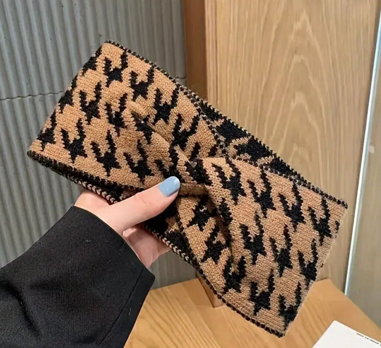 Knot hairbands knit houndstooth/ Diademas Bandas para el pelo con nudo de hilo diseño pata de gallo