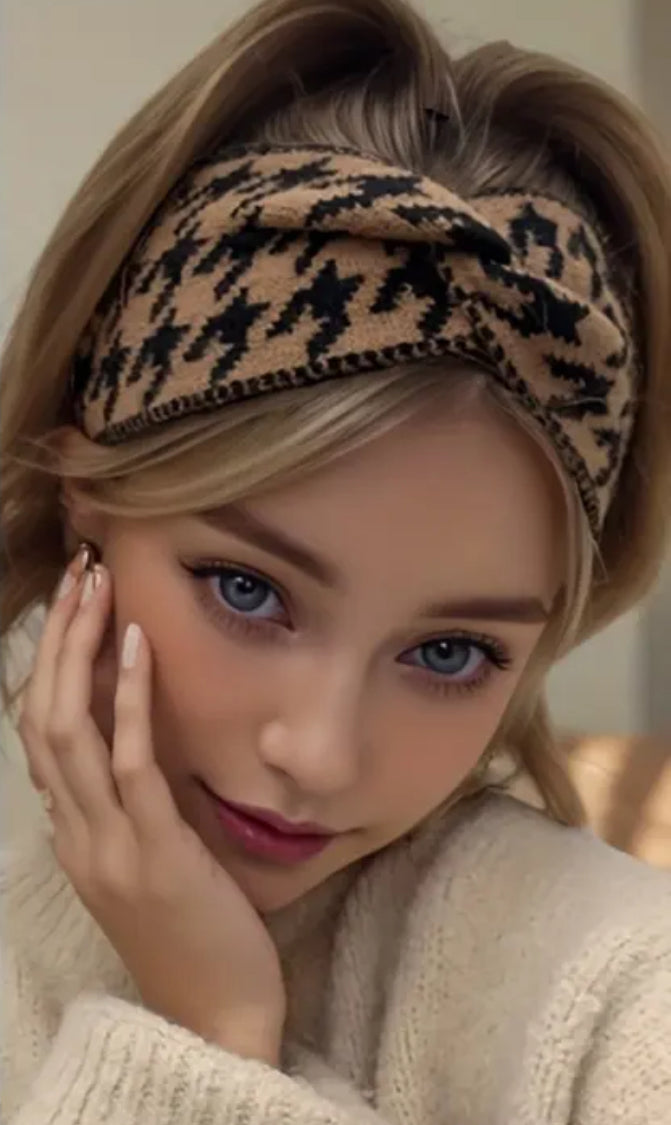 Elegant Vintage Knit Houndstooth Headbands Women - Wide, Elastic Cross Knot Hair Bands perfect for Autumn & Winter/ Elegantes diademas de pata de gallo de punto vintage para mujer - Bandas de pelo anchas y elásticas con nudo cruzado perfectas para el otoño y el invierno