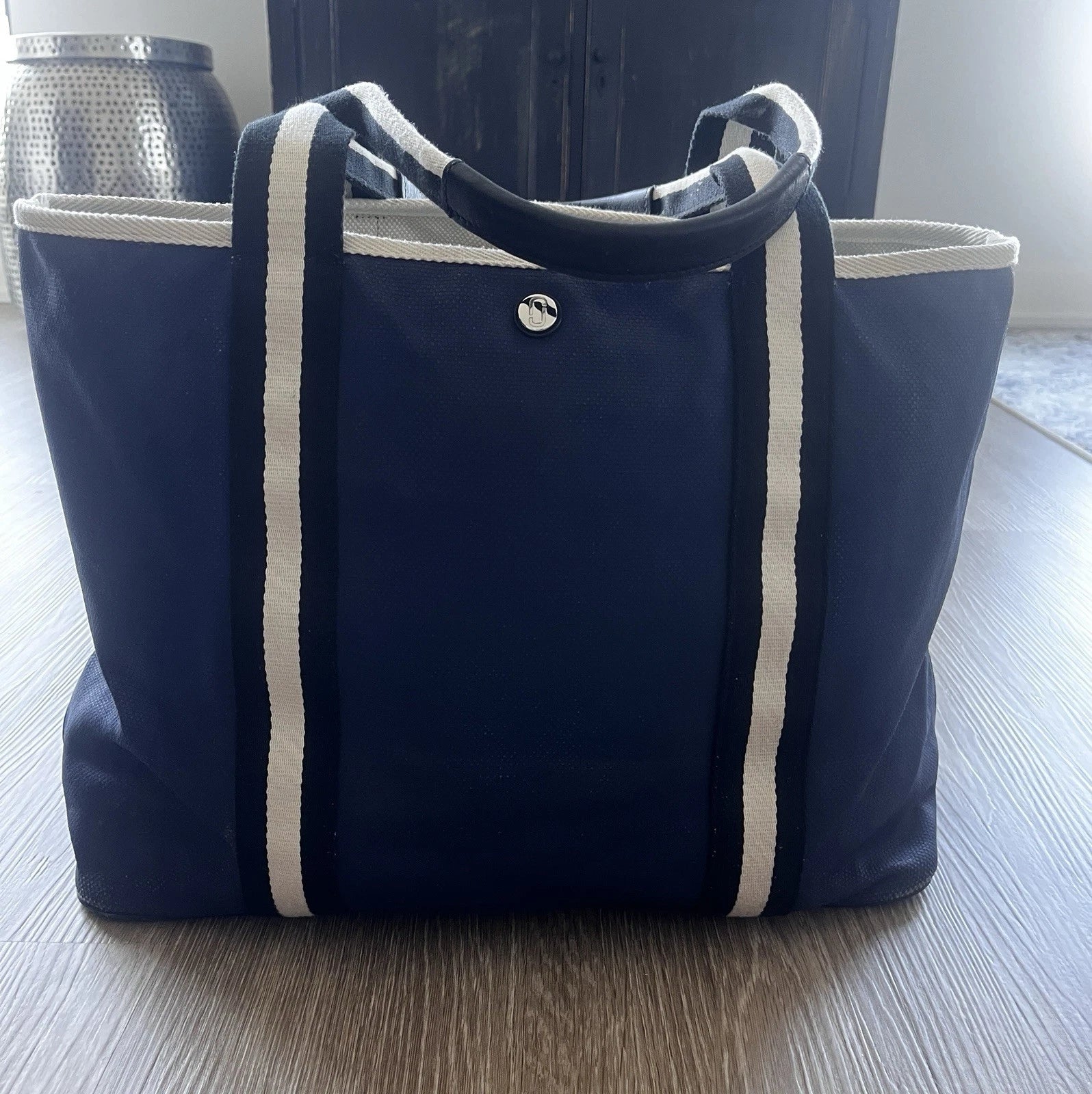Marc Jacobs Large Coated Canvas Tote Beach Bag Navy Blue