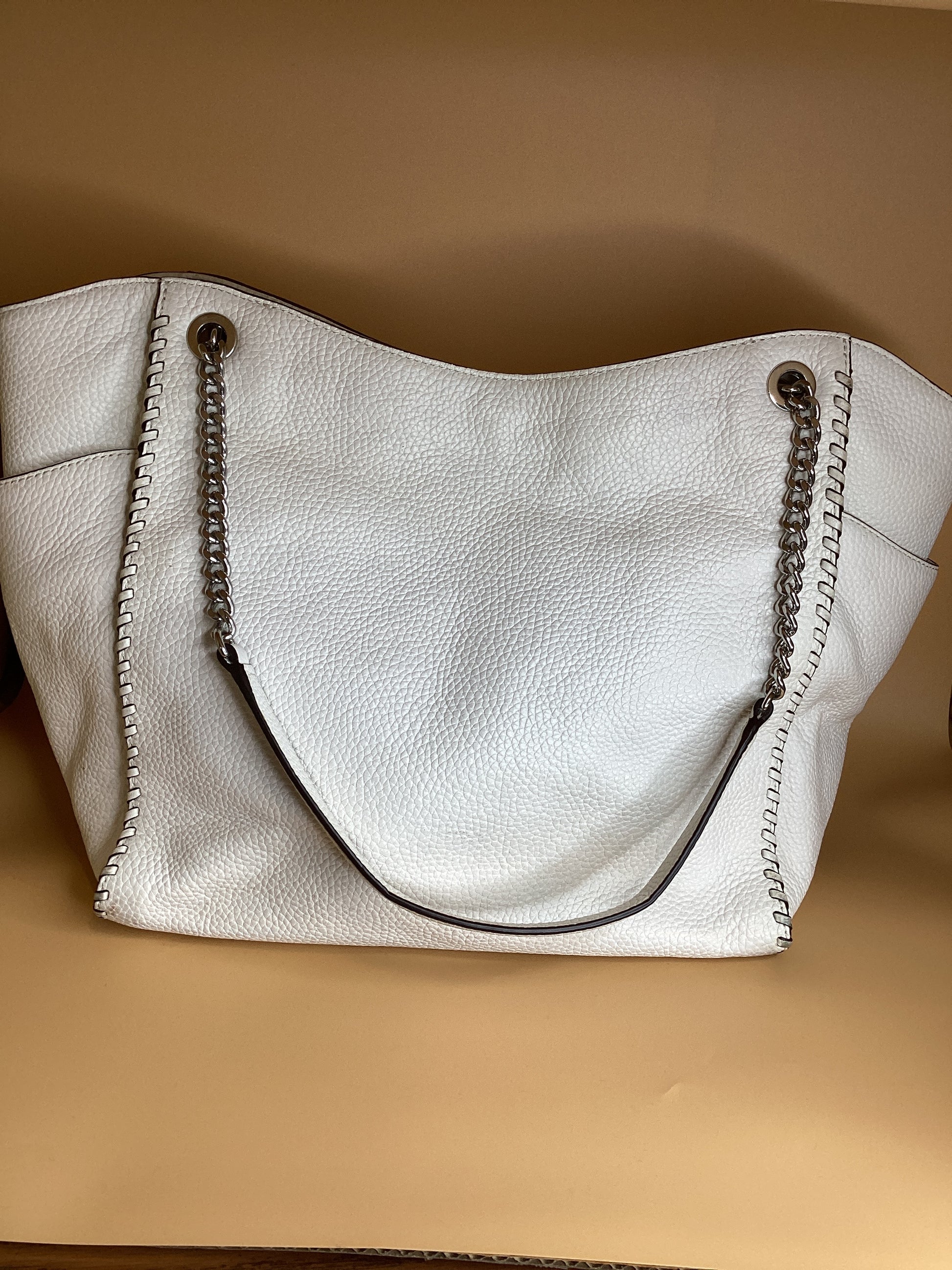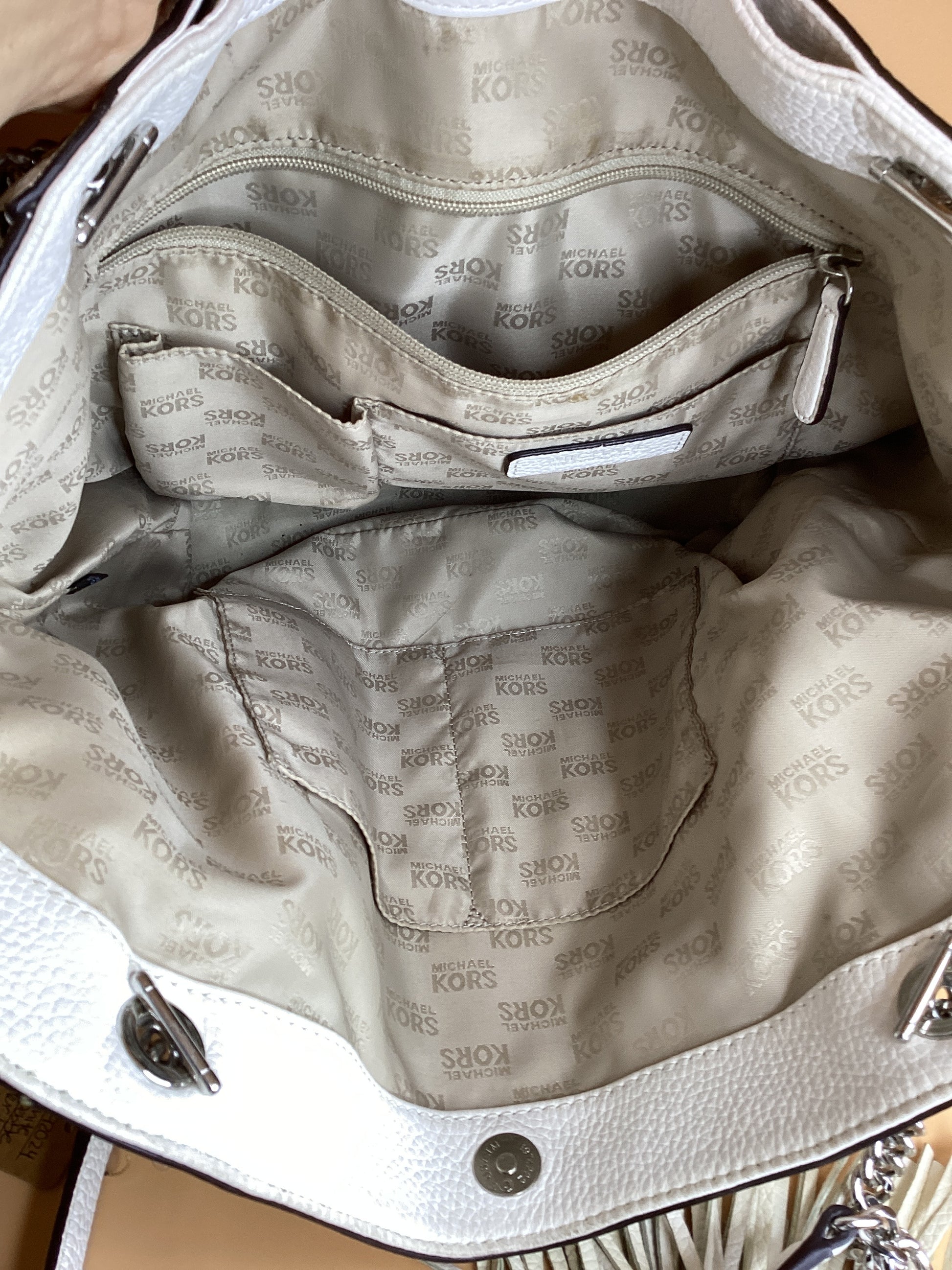 MK white pebble leather tassel shoulder bag