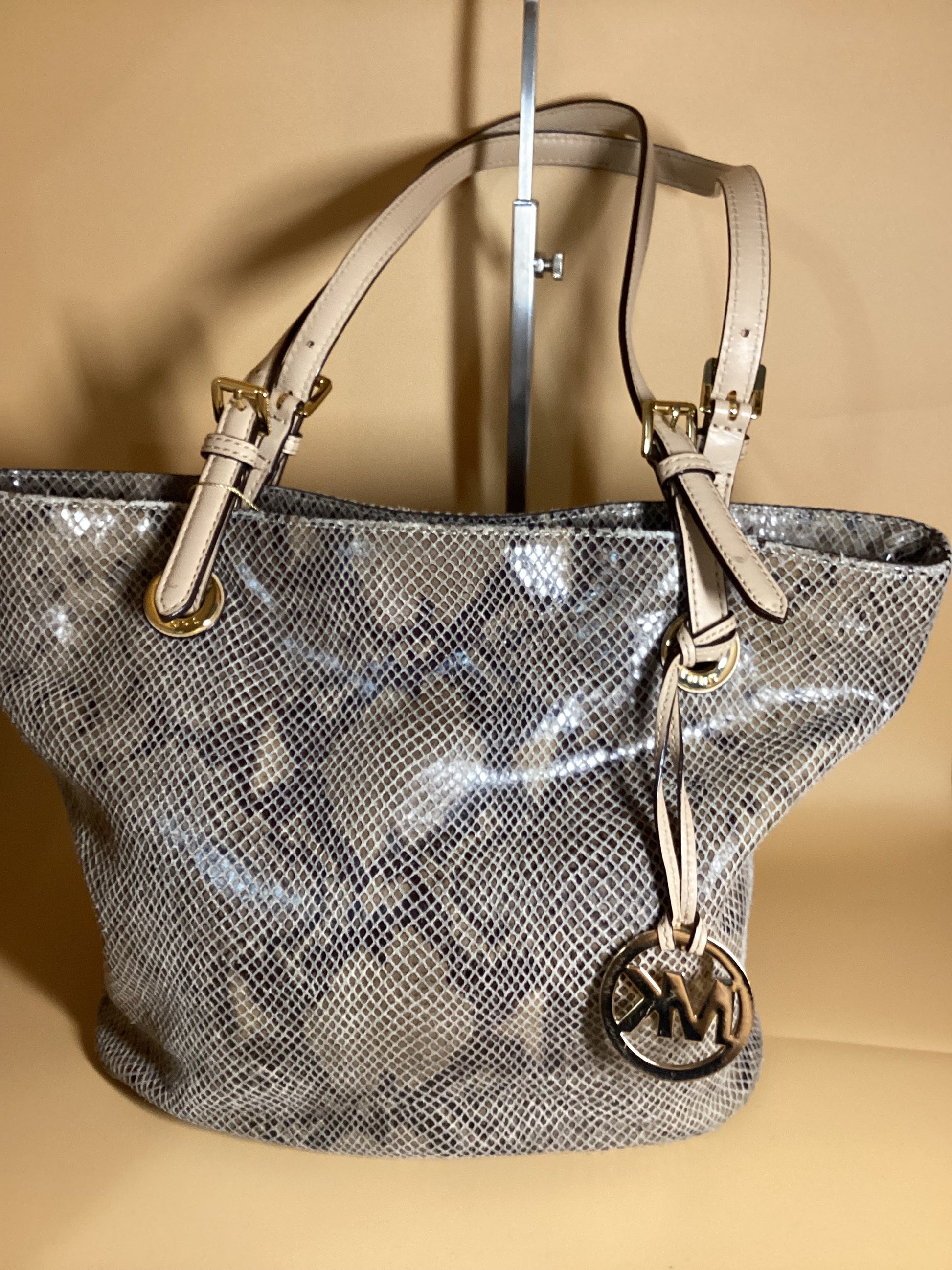 Michael Kors snake leather tote, shoulder bag, nude leather straps.