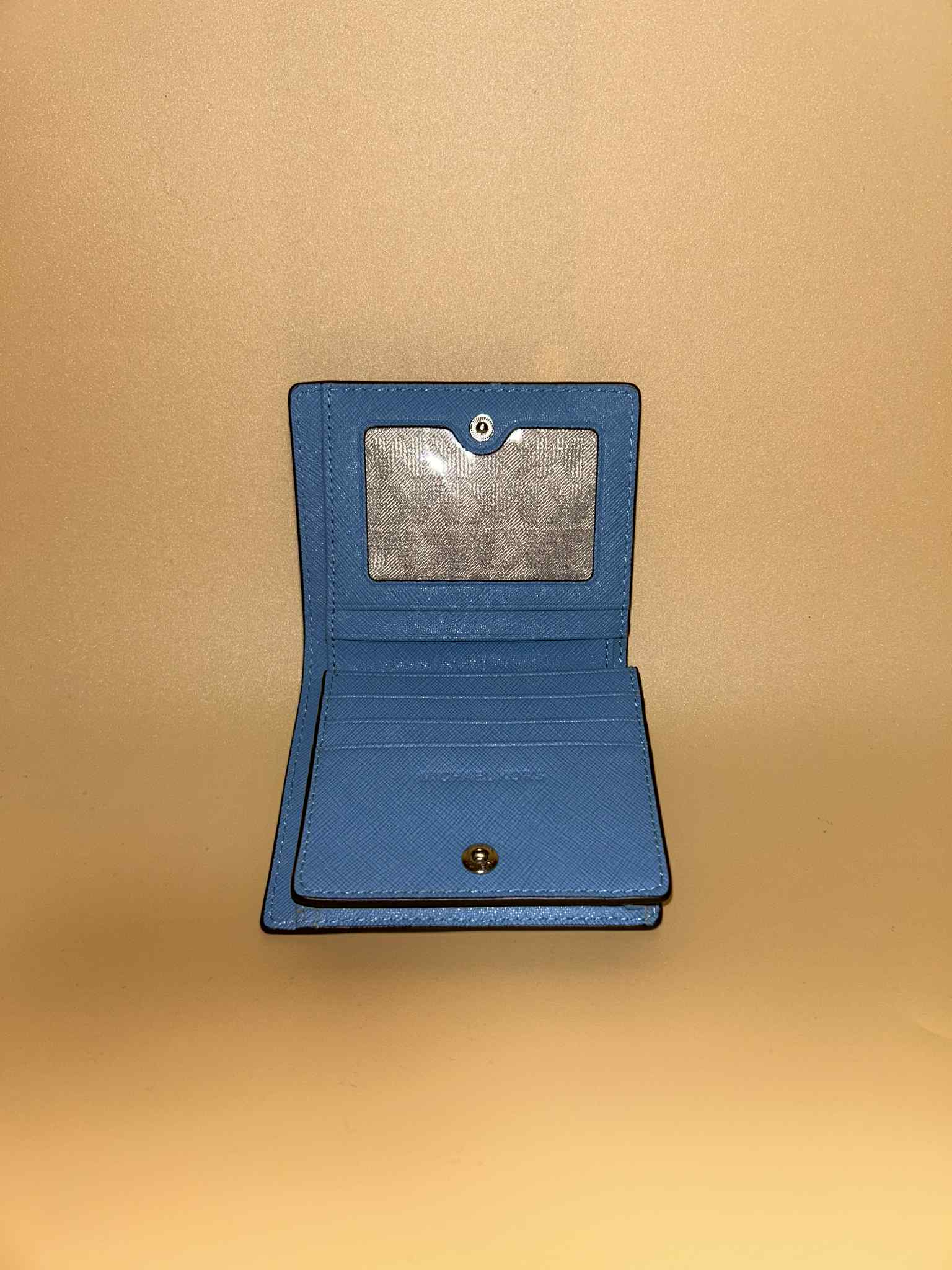 Michael Kors Compact Baby Blue Wallet (Like New) - All PRELOVED bags/wallets are used, please keep in mind that you may not be able to appreciate the details that each piece has in the pictures, if you have questions or want more precise details of any of our PRELOVED items contact us directly and we will gladly help you.