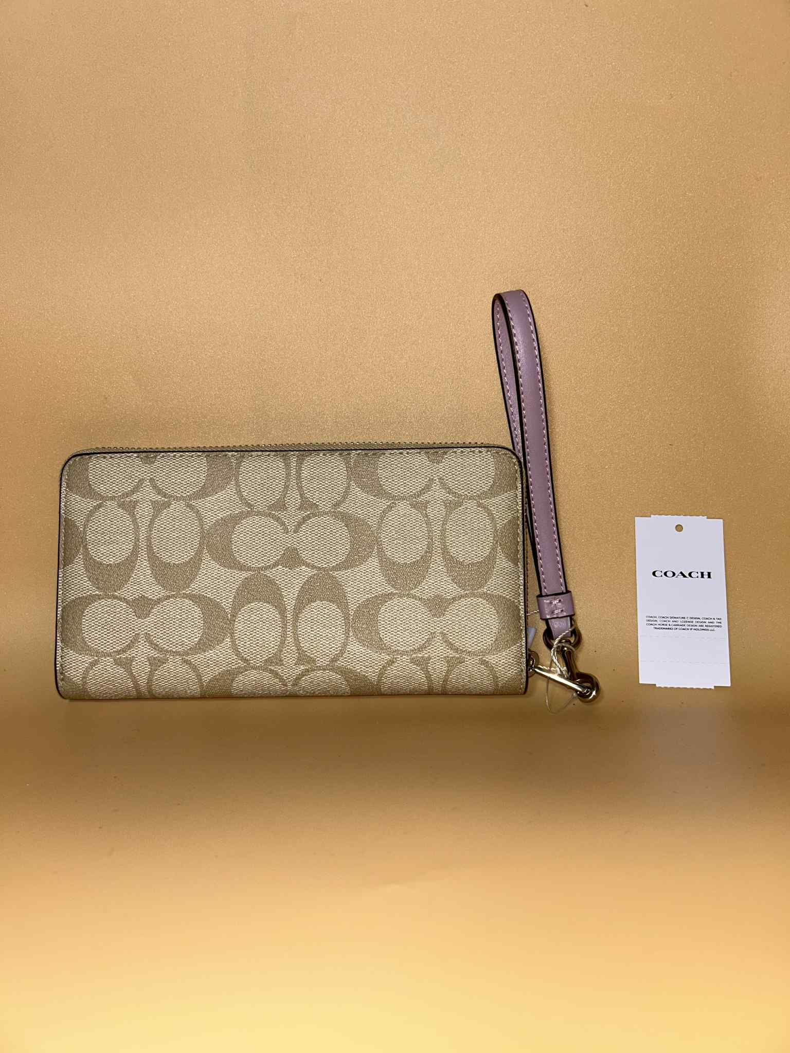 Coach Outlet Long Wallet for Women Signature Beige Silver Hardware and Ice Purple Strap - C4452 SVV7O