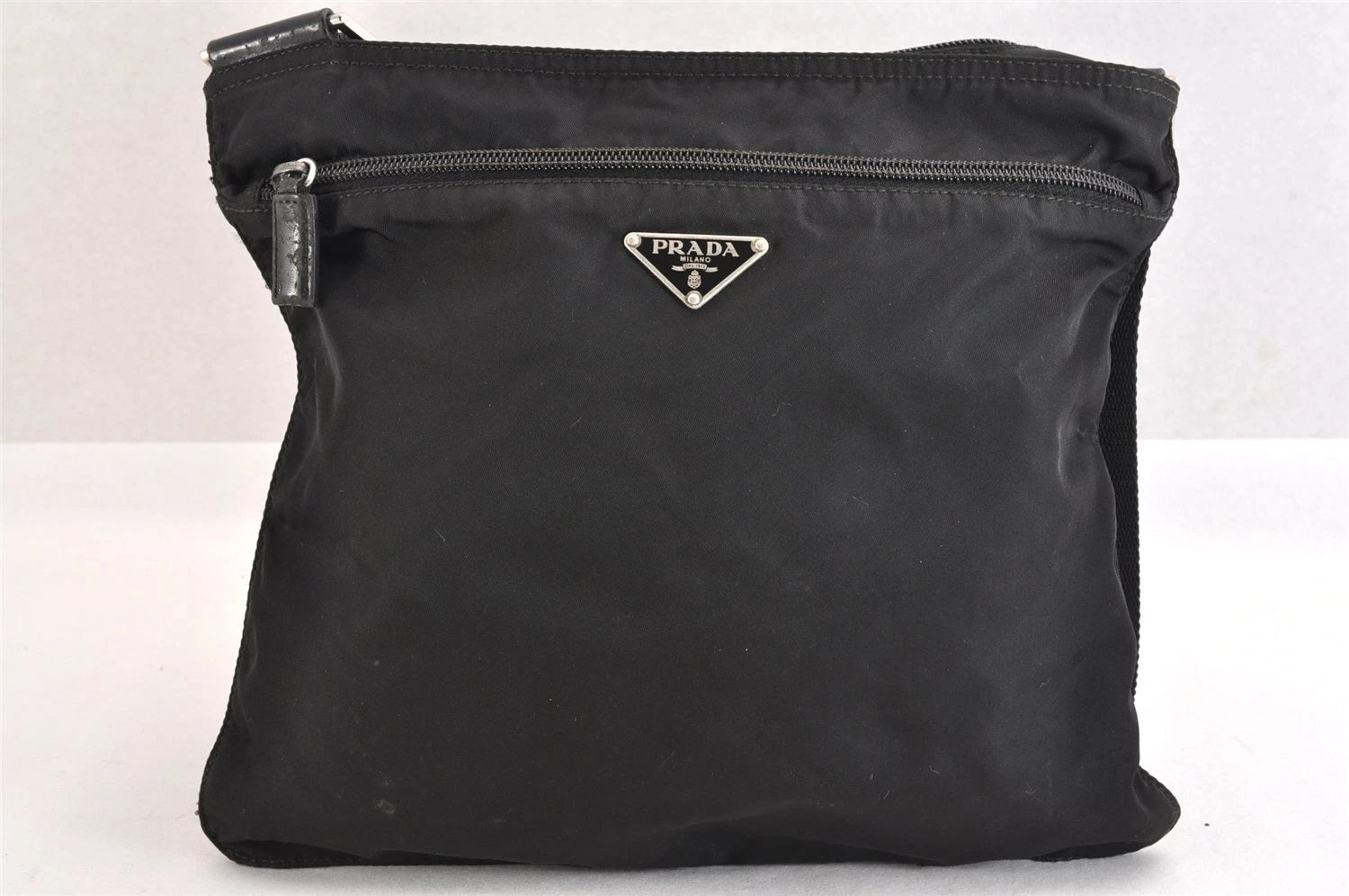 Authentic PRADA Vintage Nylon Leather Shoulder Cross Body Bag Purse Black 3521M